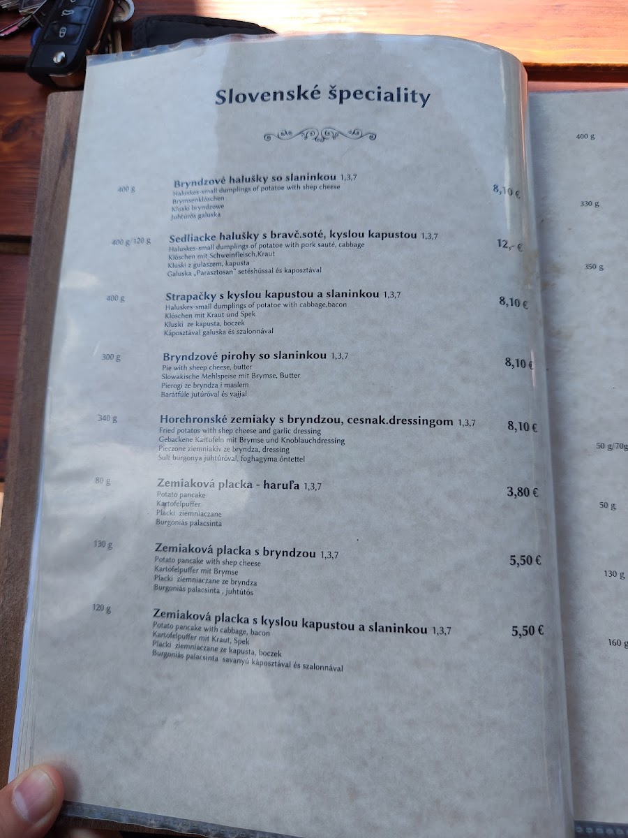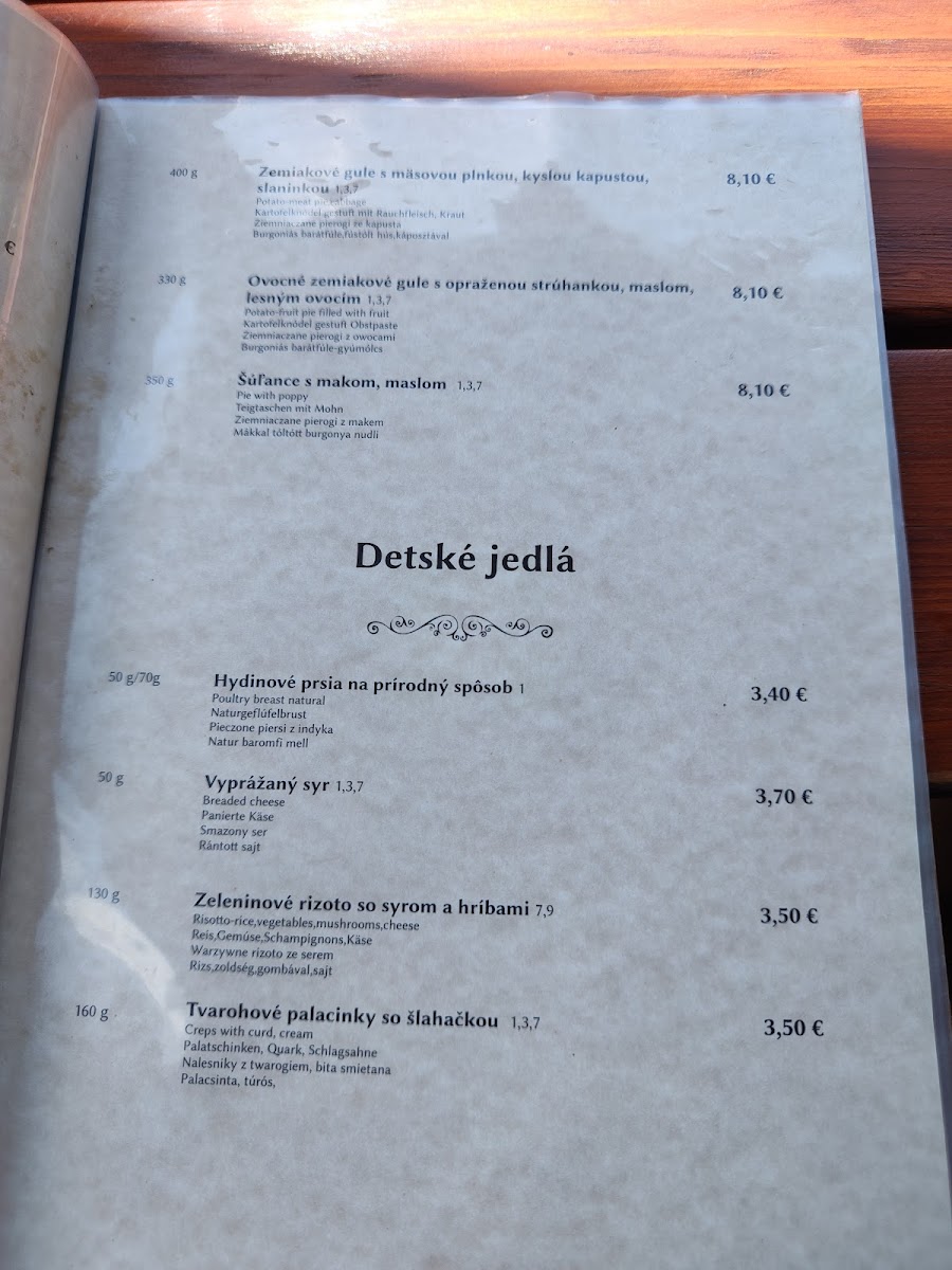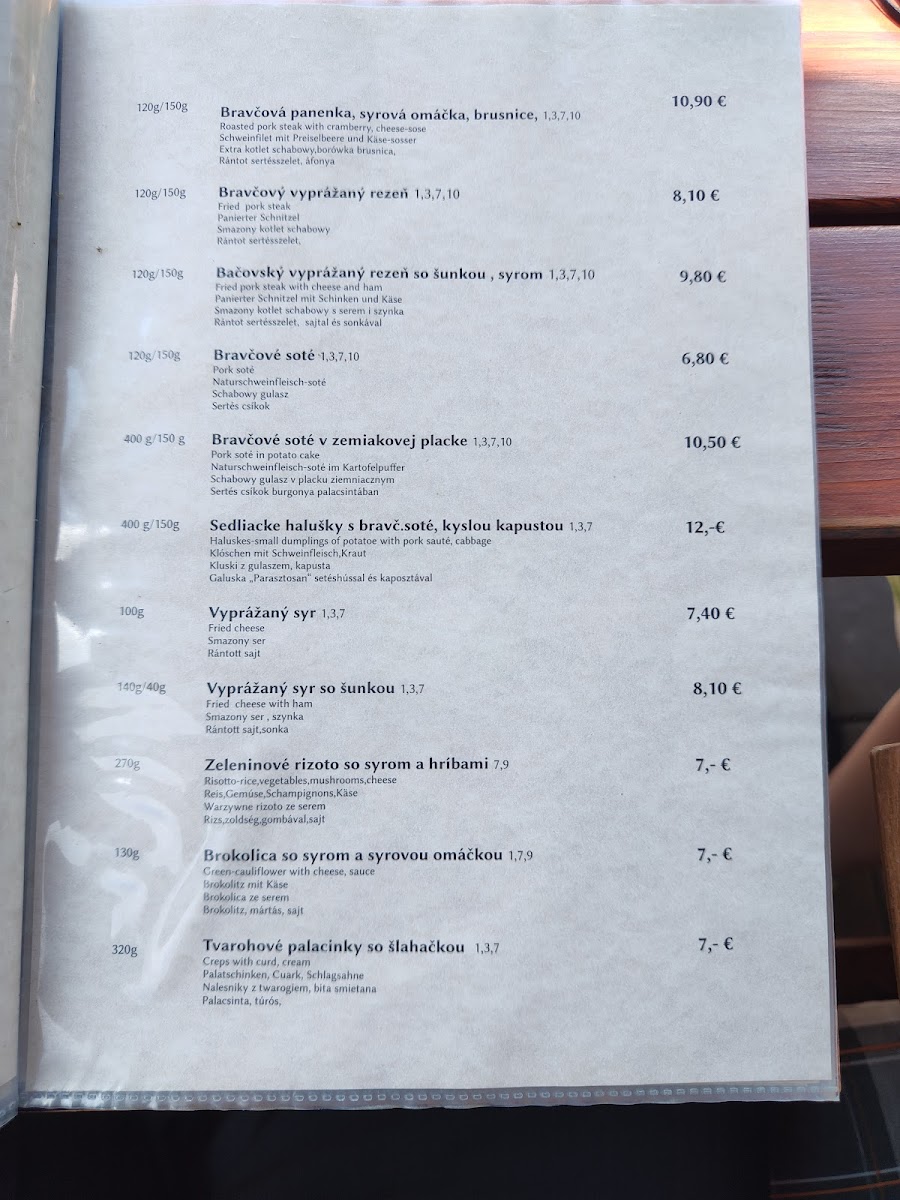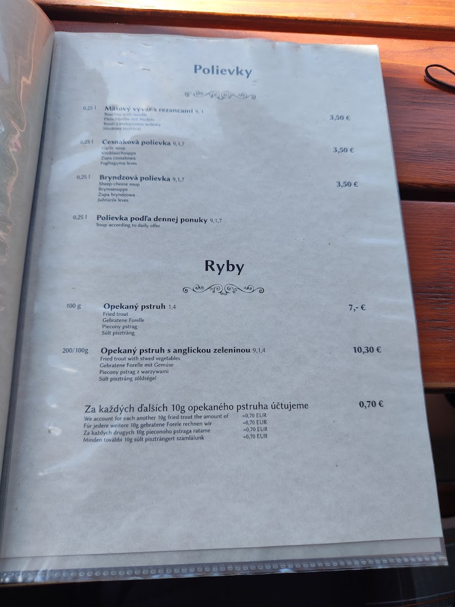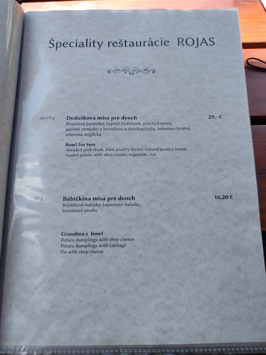 The menu at Reštaurácia Rojas offers a delightful mix of traditional Slovakian comfort food and hearty portions, perfect for those craving authentic local flavors. Among the standout dishes is the Bryndzové Halušky, a beloved Slovak specialty made with potato dumplings, creamy bryndza cheese, and crispy bacon, all for a reasonable price. Another popular option is the Rezen S Hranolkami, a breaded pork schnitzel served with crispy fries, a simple yet satisfying choice for meat lovers. For those looking for something a bit more indulgent, the Černohorský Rezeň stands out as a rich, flavorful variation of the schnitzel, stuffed with ham and cheese, and fried to perfection. Each dish on the menu reflects the restaurant's commitment to Slovakian culinary traditions, ensuring a cozy and fulfilling dining experience.